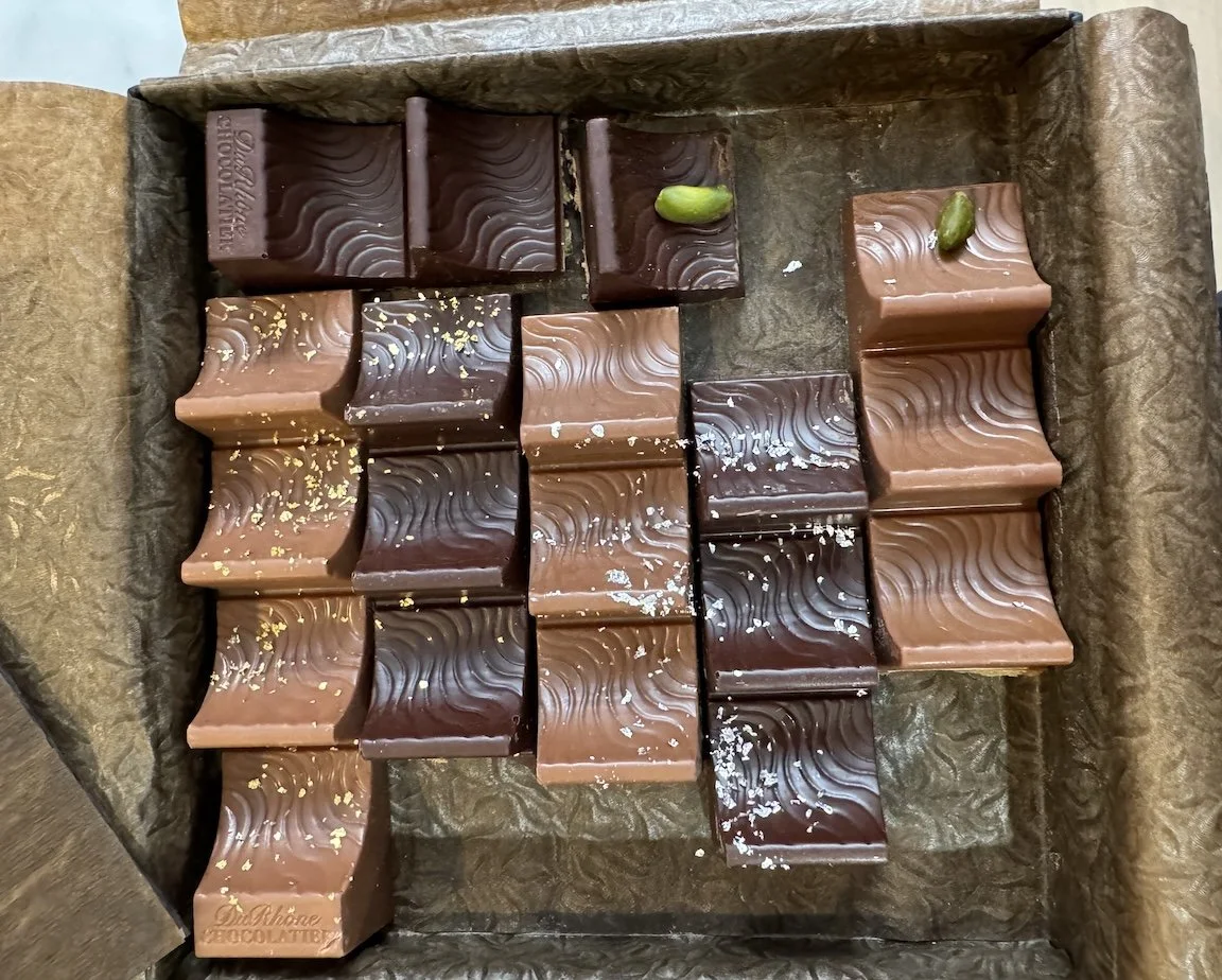 I bought this box of chocolate from the famous chocolate house LA MAISON DU RHÔNE in Geneva, Switzerland https://durhonechocolatier.ch/en/