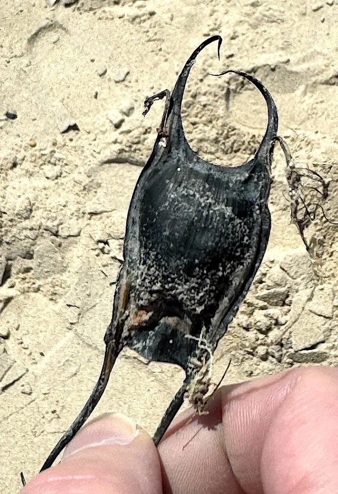 Another interesting thing we found on the beach on the Atlantic Ocean side was many egg cases. According to Wikipedia. An egg case or egg capsule, often colloquially called a mermaid's purse, is the casing that surrounds the eggs of oviparous chondrichthyans. Living chondricthyans that produce egg cases include some sharks, skates and chimaeras. Egg cases typically contain one embryo, except for big skate and mottled skate egg cases, which contain up to 7 embryos.